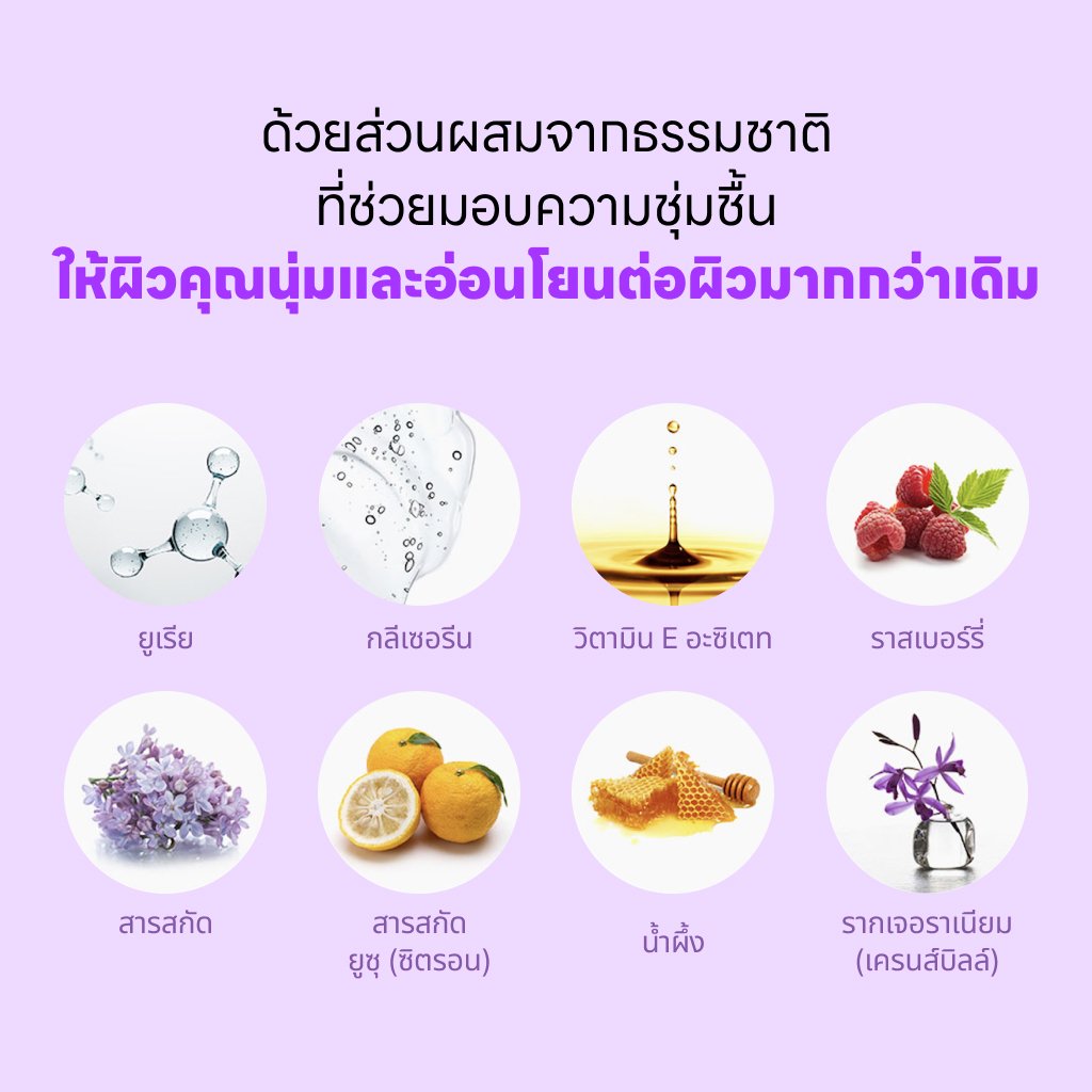 - ผสมด้วยส่วนประกอบที่จากธรรมชาติที่ช่วยให้ความชุ่มชื้น ให้เนื้อสัมผัสนุ่มนวลและอ่อนโยนยิ่งขึ้น!